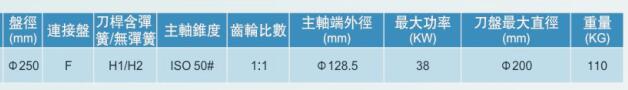 二 MK雙向銑頭的技術參數